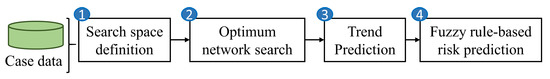 The proposed framework consists of four modules as shown in Figure 2. The modules are (1) search space definition module, (2) network search module, (3) local trend prediction, and (4) a fuzzy rule-based risk assessment module. We first discuss the background of RNN and then these modules below: