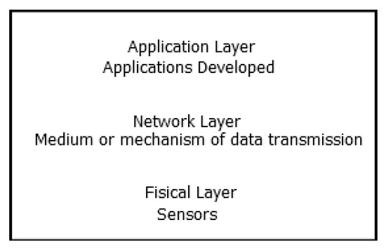 Architectures based on IoT are usually divided into three layers: perception, network, and application layer, as shown in Figure 1 and mentioned in [1,7,8,9].