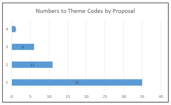 Figure 8 shows the number of theme code by the proposal. It means that 35 proposals were classified with one theme code, 11 proposals were classified with two theme codes, six proposals were classified with three theme codes, and one proposal was classified with four theme codes. Figure 8 also shows the inverse relationship between the number of attacks mitigated in a proposal and the number of proposals that mitigate that number of attacks. In other words, the higher the number of attacks mitigated in a single proposal there is, the lower the number of proposals found in the literature.
