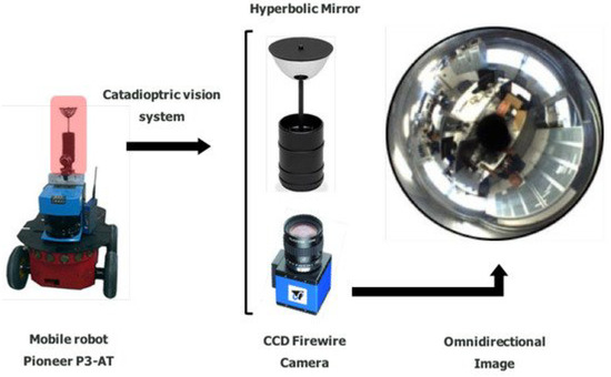 These techniques are invariant against changes in the orientation of the robot if it moves in the floor plane and panoramic images are used. To capture them the mobile robot is equipped with an omnidirectional vision system. This system consists of a camera and a hyperbolic mirror mounted in front of the lens. The system is mounted vertically on the mobile robot, as done in several previous works such as [50,51,52,53]. The omnidirectional camera captures images with a field of view of 360 around the robot so they offer complete information from the surroundings of the robot from every capture point. Finally, the omnidirectional images might be transformed into panoramic images. The complete experimental setup is presented in Section 5.