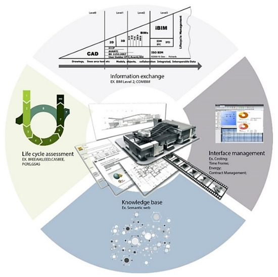 According to Eastman [39], the benefits of BIM should influence a project’s preconstruction phase, driven by the owner. The phases of design, construction, and fabrication, which are primarily driven by contractors, as well as the post-construction period, driven by operators, will also be affected. The use of BIM as the foundation for building engineering projects dates back to the early 1990s [40]. The term “building information management” is now used to describe a process whereby the digital approach guides the project construction and operation. This approach and, more precisely, the enhanced information-sharing properties within it, could be beneficial to the public sector and political behaviour. BIM technologies serve to build a low-cost integrated information management system in construction projects [41]. The finalised BIM model has tremendous potential, not only to help contractors for inspection purposes but, also, to aid in intelligent management at a municipal level [42].