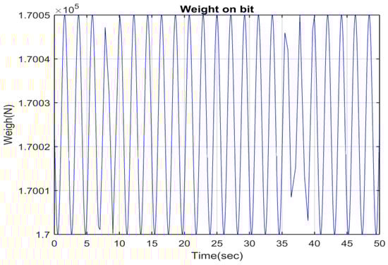 is the frequency of variations, is the depth of cut for a rotation of the tool, and W0 is the initial value of WOB. The frequency depends on the depth of cut and is the ROP (rate of penetration), which is given in (11). Figure 7 shows an example of WOB variation as a function of time. The initial value of WOB is W0 = 170,000N.