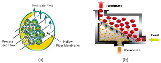 The mechanism of the ultrafiltration: (a) Hollow fibers ultrafiltration mechanism, (b) Fractional separation during ultrafiltration.