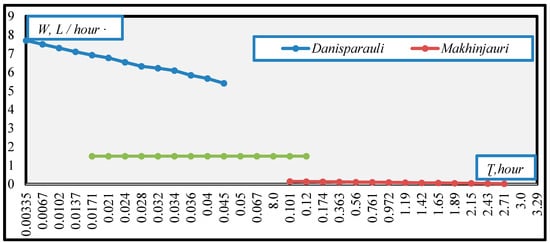 Figure 5 shows the dependence of the productivity of the ultrafiltration process of the medicinal waters (Danisparauli, Makhinjauri, Naminauri) on the filtration time.