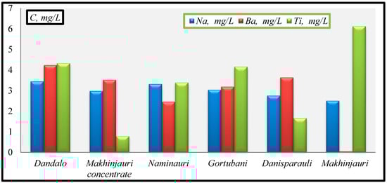 - Ti(mg/L): Makhinjauri concentrate (0.786)→Danisparauli (1.66)→Naminauri (3.39)→Gortubani (4.16)→Dandalo (4.33)→Makhinjauri (6.13).
