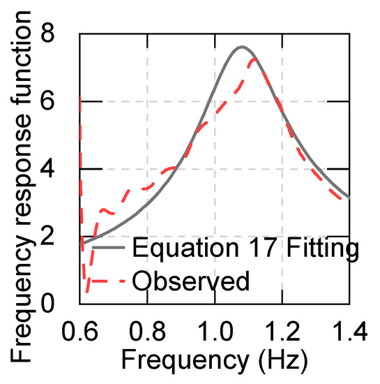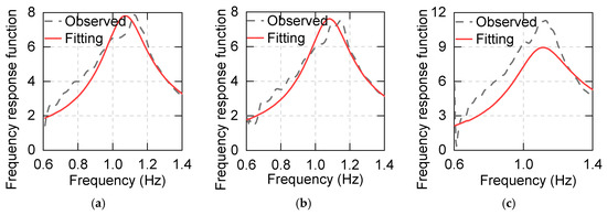 The result of modal identification modified by Equation (17) is shown in Figure 19. The result shows that after modification, the frequency response function of the structure is basically the same as that under horizontal excitation.