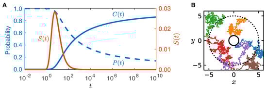 - Chou, T.; D’Orsogna, M. First passage problems in biology. In First-Passage Phenomena and Their Application; Metzler, R., Oshanin, G., Redner, S., Eds.; World Scientific: Singapore, 2014; pp. 306–345. [Google Scholar] [CrossRef]