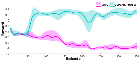 7] proposed an effective reward formulation methodology that is in accordance with the optimization delay due to the sparse reward. A sparse reward can hardly show what is better, so it makes the reward validity weak and training slow. Hindsight Experience Replay (HER) is a replay technique that makes the failed experience an accomplished one. DDPG [