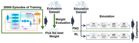 Figure 1. Additionally, the velocity term in Equation (10) of Pure PNG is the inertial velocity of the missile. PNG is very useful, and it basically is even optimal for missile guidance. Technically, creating a missile guidance law that has better performance than PNG, despite sharing the same engagement scenario that PNG is specialized for, is not possible under ideal circumstances. However, PNG is not optimized for practice. Thus, we will figure out whether RL-based is able to exceed the performance of PNG when the simulation environment gets more practical, i.e., applying a controller model. Of course, we did not apply the practical model to training but applied them to the simulation part.