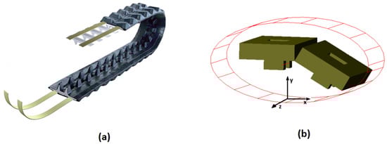 - Ryu, H.S.; Bae, D.S.; Choi, J.H.; Shabana, A.A. A compliant track link model for high-speed, high-mobility tracked vehicles. Int. J. Numer. Methods Eng. 2000, 48, 1481–1502. [Google Scholar] [CrossRef]