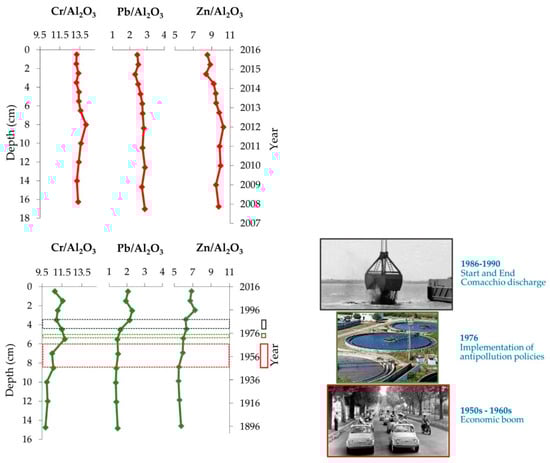 The Zn and Pb concentrations found in well dated sediment cores collected at several locations along the western Adriatic Sea were successfully used to reconstruct the anthropogenic influence in the past [,,].