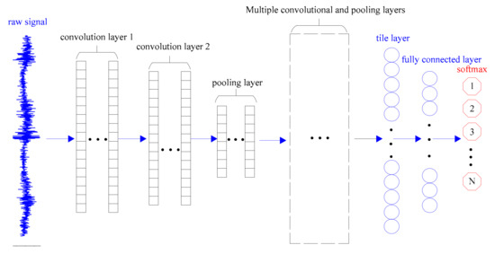 CNN is a neural network specially used to process data with similar grid structures, for example, 1-D time series data (which can be considered as a 1-D grid formed by regularly sampling on the time axis) and 2-D image data (which can be regarded as a 2-D pixel grid) [24]. CNN is a multi-layer neural network and it contains an input layer, hidden layers, and an output layer. The hidden layer is mainly composed of a convolution layer and a pooling layer. The hidden layer processes the input signal and extracts features. Finally, the fully connected layer acts as a classifier to realize the mapping with the output target.