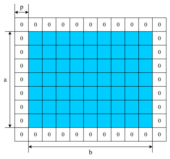 Because the input image of this model is oblong and the image will be compressed after each convolution, the key features at the edge of the image may be lost during convolution. In order to prevent this problem and make better use of edge data, the input of each convolutional layer is filled [28], which is to fill 0 around the image, as shown in Figure 8.