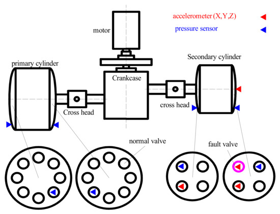 - Wang, M.; Sun, X.; Zhang, J. Fault simulation and diagnosis of suction valve on reciprocating compressor with stepless capacity control. Fluid Mach. 2019, 47, 39–44. [Google Scholar]