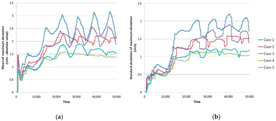 Statistical analysis of maximum deviation detected at final inspection (Stage_4). (a) Mean; (b) standard deviation.