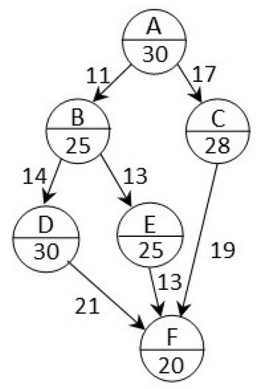 Definition 8. The length of the critical path of a DAG task [6], is denoted bywhere M is the minimum number of processors and is the processing time of task i. Definition 9. The cost of calculating an execution cost (EC) of a sub-task represented by a node expressed in flops is the cost of executing a sub-task once it is assigned to a processor. The cost of executing the total of the sub-tasks of task i is expressed as Definition 10. The cost of communication represented by between sub-tasks and is expressed in bytes.