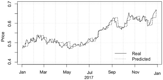 9], an analysis on the dynamics of real prices for main industrial metals is presented. Using monthly data, the authors estimated linear and threshold autoregressive models. For the nonlinear models, they assumed that the dynamics of metal prices depend on their deviation from the recursive mean. We use a monthly prediction (30 days) to compare the best RMSE value obtained in both works. Our RMSE (