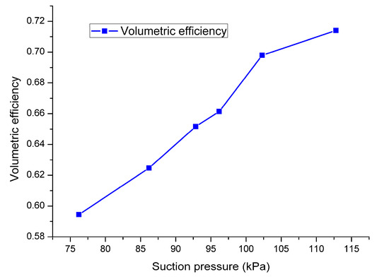 4.2.1. Effect of Suction Pressure on the Volumetric Efficiency