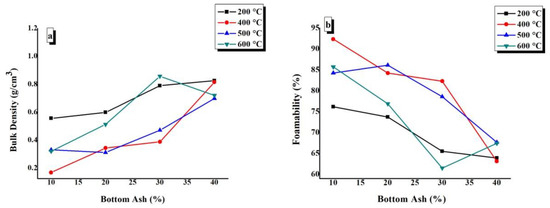 Effect of bottom ash content on (a) bulk density and (b) foamability of TGPFs.