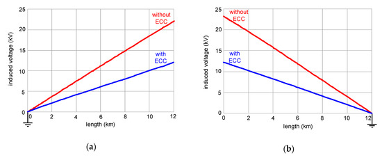 Arrangement of the earth continuity conductor (ECC): (a) a distance to the cable line; (b) its transposition.
