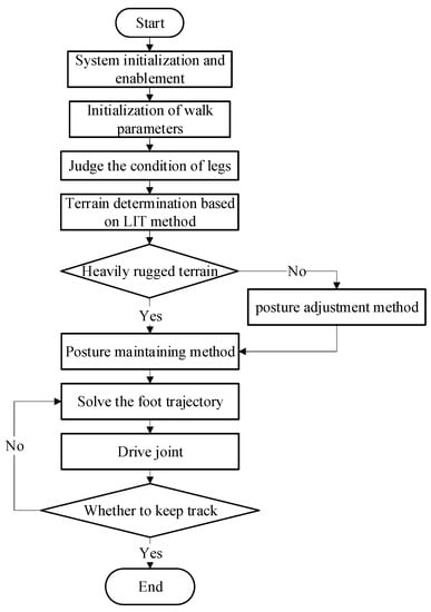 The control process diagram when the hexapod robot crosses rugged terrain.