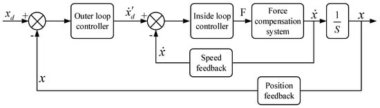 The unique synovial motion of the synovial membrane controller can make the system make small-amplitude, high-frequency reciprocating motion along the specified trajectory under certain characteristics. This motion can shield the influence of model parameters and external disturbances, so that the control system has good robustness. In order to realize the position and speed tracking control of the VSDM model, a sliding membrane controller with a double-loop structure is designed. As shown in Figure 10, the outer loop of the structure is a position loop, the inner loop is a speed loop, and the speed command output by the outer loop is used as the outer command of the inner loop.