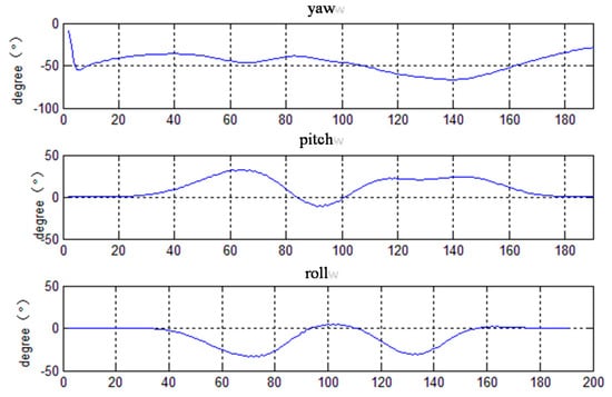 The observed values of pitch angle and roll angle: (a) Curve of pitch angle, and (b) curve of roll angle.