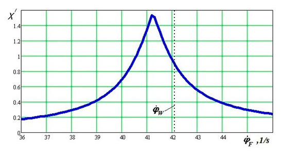 Example of dependency of the angle χ′, at the speed VW = 20 m/s and for ε = 0.01 and ψ = 0.015 rad.