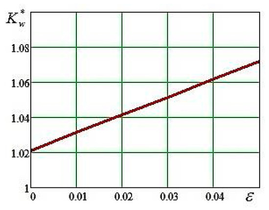 Figure 9 shows the graphs of function dependency , which demonstrates the characteristics of the influence level of the relative slippage ε in the main contact of the wheel with the rail due to the value , when the wheel is rotating at a speed VW = 20 m/s and with angles to attack ψ = 0.00 rad and ψ = 0.02 rad.