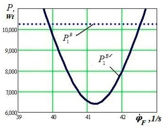 Some calculation results are shown in Figure 10, where graphs of the function dependencies and at the velocity VW = 20 m/s, = 12,500 N, ε = 0.01 and ψ = 0.015 rad are depicted. There is noticeable decrease of the friction forces power dissipated in the flange contact of the perspective wheel design in comparison with the traditional wheel design for the given running conditions in the range of angular velocities of the flange 39.8 rad/s < < 42.5 rad/s.