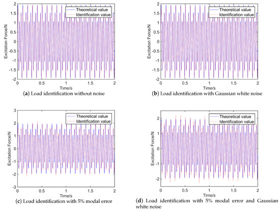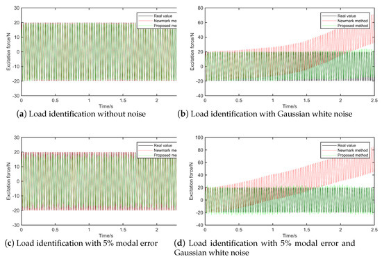 50. Li, J. Research on Dynamic Load Identification Method Based on Newmark Method. Master’s Thesis, Nanjing University of Aeronautics and Astronautics, Nanjing, China, 2019. [Google Scholar]