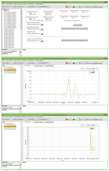 Figure 14. Parameter setting of load identification (top), initial stage of harmonic frequency excitation online identification (middle) and stable stage of harmonic frequency excitation online identification (bottom).