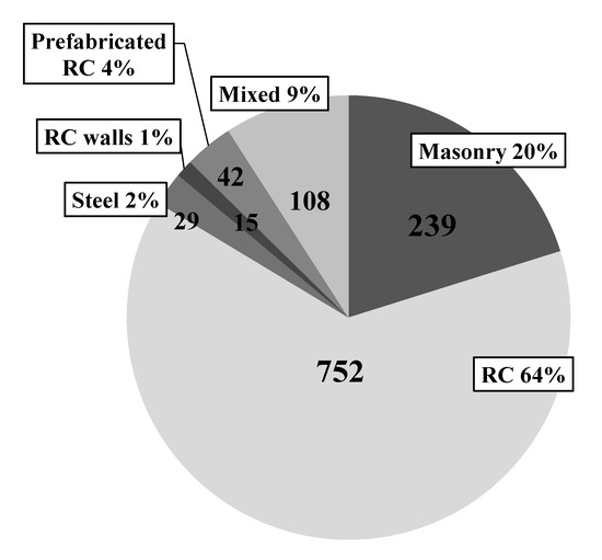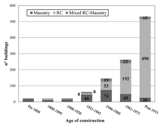 As expected due to their intrinsic vulnerability to seismic actions, the masonry buildings designed for gravity loads only had more severe vulnerability judgments (high or medium-high) in comparison with the RC buildings.