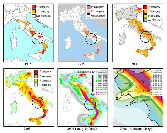 18] is an improvement of the typological classification provided by EMS-98. Such a method was, indeed, calibrated on the damage observed in the buildings after eight relevant earthquakes occurred in Italy from 1980 (Irpinia) to 2002 (San Giuliano di Puglia). Except the Irpinia earthquake, the considered events are characterized by a macroseismic intensity, evaluated according to the MCS scale, variable from V to VIII. Since all the examined buildings were built before 2003, when the first innovative seismic code was introduced in Italy, the method was calibrated on buildings not designed according to the ‘modern’ rules reported in more recent national and international codes.