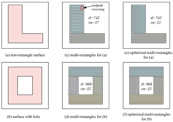 Optimized multi-rectangle algorithm, tl denotes the total length of toolpath, and rn denotes the revering number of toolpath.