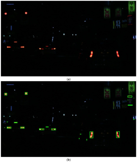 - Gao, F.; Ge, Y.; Lu, S.; Zhang, Y. On-line vehicle detection at nighttime-based tail-light pairing with saliency detection in the multilane intersection. IET Intel. Transport Syst. 2019, 13, 515–522. [Google Scholar] [CrossRef]