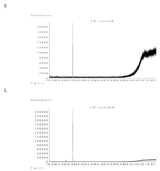 Chromatograms of the essential oils of A. secundirramea flowers (F) and leaves (L).