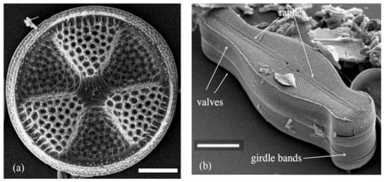 6. De Stefano, M.; de Stefano, L. Nanostructures in diatom frustules: Functional morphology of valvocopulae in Cocconeidacean monoraphid taxa. J. Nanosci. Nanotechnol. 2005, 5, 15–34. [Google Scholar] [CrossRef] [PubMed]