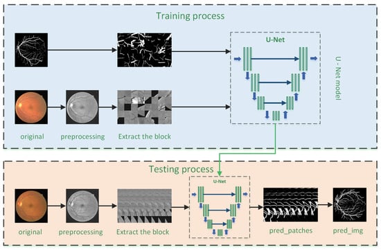 As shown in Figure 1, the retinal vessel segmentation framework proposed in this paper is divided into two stages, namely training stage and testing stage. The overall process are as follows: