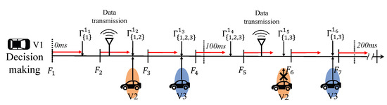 The information including location, distance between adjacent vehicles, and the vehicle velocity can be obtained by the equipped sensors such as radar, Global Positioning System (GPS), and cameras. Collision avoidance systems based on sensing data are actively studied [4,5], including systems to fuse the sensing data obtained from multiple sensors, e.g., combining data from radar and cameras [6]. However, autonomous vehicle systems relying solely on ego-vehicle sensors have limitations in dealing with the collisions due to reasons such as bad weather, sensor malfunctioning, or blind spots, etc. [7,8,9]. The risk can be reduced by utilizing sensed information from the neighboring vehicles through Vehicle-to-Vehicle (V2V) communication [10,11] such as Dedicated Short Range Communications (DSRC) [12] which can support safety applications in high data rates [13,14].