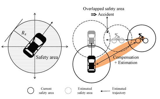 Although DS has many advantages, the classical DS combination may yield unreasonable outputs when evidences are highly conflicting [18,19,20]. This is critical for autonomous vehicle safety, i.e., vehicles may have erroneous sensing results. Data fusion can cause either false positive or false negative errors. The former is a false alarm, i.e., the vehicle falsely identifies a nonexisting object as an existing one. The latter represents misdetection of an existing object or obstacles. In the context of autonomous vehicle safety, false negatives are significantly dangerous [21] according to the case studies on autonomous vehicle accidents [22]. Therefore, we would like to put more emphasis on the confidence in existence rather than nonexistence of objects, and this necessity results in an asymmetry in the importance of sensed events. However, most of existing works do not consider this aspect. Although there are many works which incorporate the degree of conflict into a fusion method [23,24,25,26,27], the studies on evidence distance taking the aforementioned issue into account are rare. In this paper, we develop a novel metric for evidence distance to measure conflict by assigning asymmetric weights to sensed results and propose a real-time data fusion scheme based on the new metric. In addition, we outline a V2V communication method for anti-collision systems in which the proposed data fusion scheme can be effectively applied.