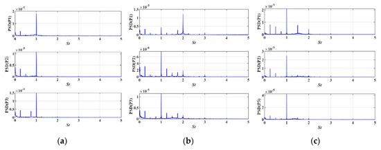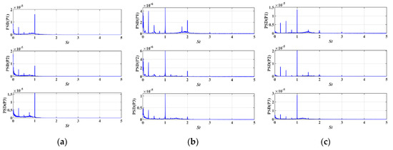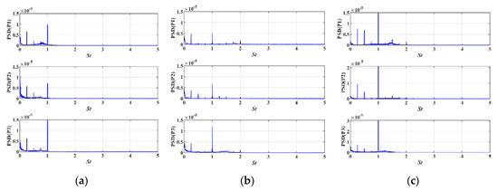 - The RF and BPF are obvious in the spectra. The bell mouth height has an impact on the spectrum distribution. As the height decreases, the high-frequency amplitudes (St > 1) gradually increase.