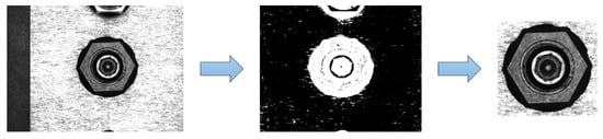 In the pre-processing stage (Figure 3), the set of images was processed by artificial vision algorithms, similar to those currently used in industrial applications. The detection and extraction of objects was carried out based on the following rules (defined according to the actual features of the referencing elements in the dataset):