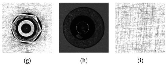 Categorized images using the Patch Classifier interface, with (a) drill; (b) countersink; (c) rivet; (d) protruding rivet; (e) temporary fastener 1; (f) temporary fastener 2; (g) hexagonal; (h) screw; and (i) background categories.