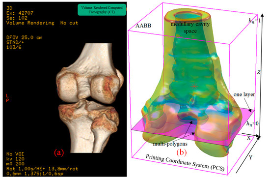 The Printing Coordinate System (PCS) of 3D reconstructed manifold model (right human knee distal femur) is shown in Figure 1.