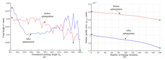 There exists the inherent staircase effect (SE) in 3DP. The SE can be manifested by various geometric parameters, for instance, cusp height and volume error . The cusp height is defined as