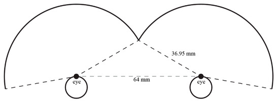 The distance between the eyes is chosen to be 64 mm—the average interpupillary distance for a human adult male [26].