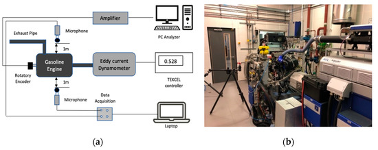 (a) Schematic of the set-up; and (b) the instrumented engine.