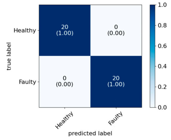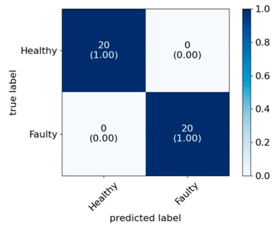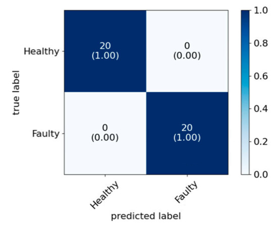 The extracted feature matrix is then fed into the three models described in Figure 4, and the performance of each model is evaluated using the metrics listed in Table 7. True Positive (TP) are the data points which are accurately classified as faulty data and False Positive (FP) are the data points which are incorrectly classified as faulty data. True Negative (TN) are the data points which are accurately classified as healthy data and False Negative (FN) are the data points which are incorrectly classified as healthy data. Specificity indicates the proportion of negatives that are correctly identified, whereas precision indicates the proportion of positive that are correctly identified. These metrics along with the most commonly used accuracy measure are all very important in examining a model’s performance.