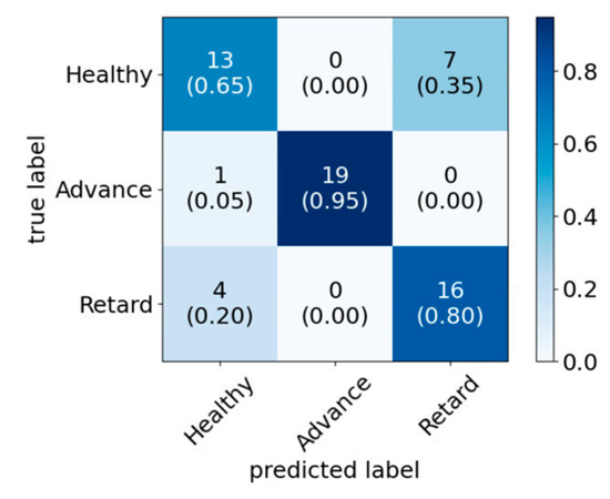 The confusion matrixes for Model 1 are presented in Figure 6, Figure 7 and Figure 8 for the three experimental cases. From the confusion matrixes, it is evident that Model 1 can be applicable in classifying fault in the case of engine misfire, where the FN and FP are negligible. However, it is seen that, for the ignition timing variation and AFR variation data, Model 1 is comparatively less successful due to higher operational complexity.